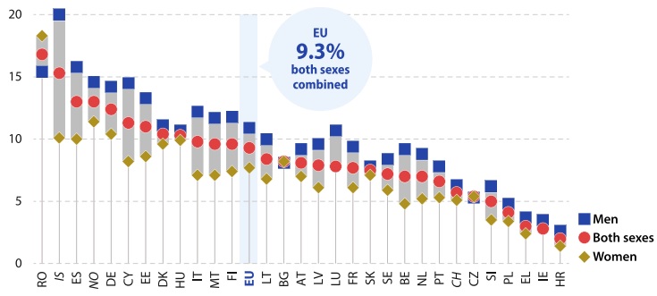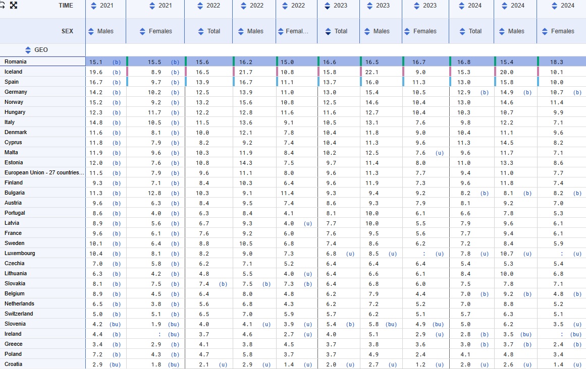 2024: 16,8% (15,4% - băieși și 18,3% - fete)