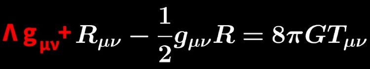 De obicei, fizicienii scriu constanta cosmologică (în roșu) în partea dreaptă, ca și cum ar fi parte din termenii energetici. Personal, cred că ea aparține în partea stângă – este pur și simplu o parte din geometrie.