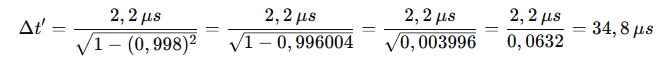 Dacă un miuon călătorește la o viteză de aproximativ 0,998∗ (unde este viteza luminii), dilatarea timpului poate fi calculată folosind formula: