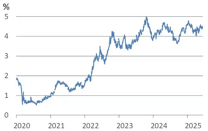 Consecința previzibilă a acestei risipe, combinată cu programul haotic al tarifelor vamale, este creșterea puternică a ratelor dobânzilor pe care guvernul SUA trebuie să le plătească pentru împrumuturi.
