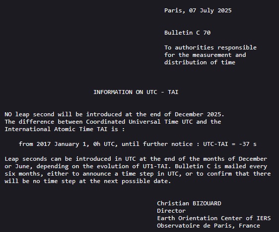 Iată și ultima notificare publică a IERS privind secundele suplimentare, de acum câteva zile: