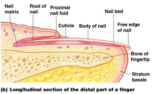 Atunci când celula moare, aceasta îşi pierde nucleul şi alte organite intracelulare. Ceea ce rămâne este cheratina. O enzimă cunoscută drept transglutaminază începe să fixeze cheratina într-un amestec de diferite proteine şi grăsimi. Rezultatul final sunt unghiile dure folosite că să ne scobim în nas şi să ne scărpinăm pe spate.