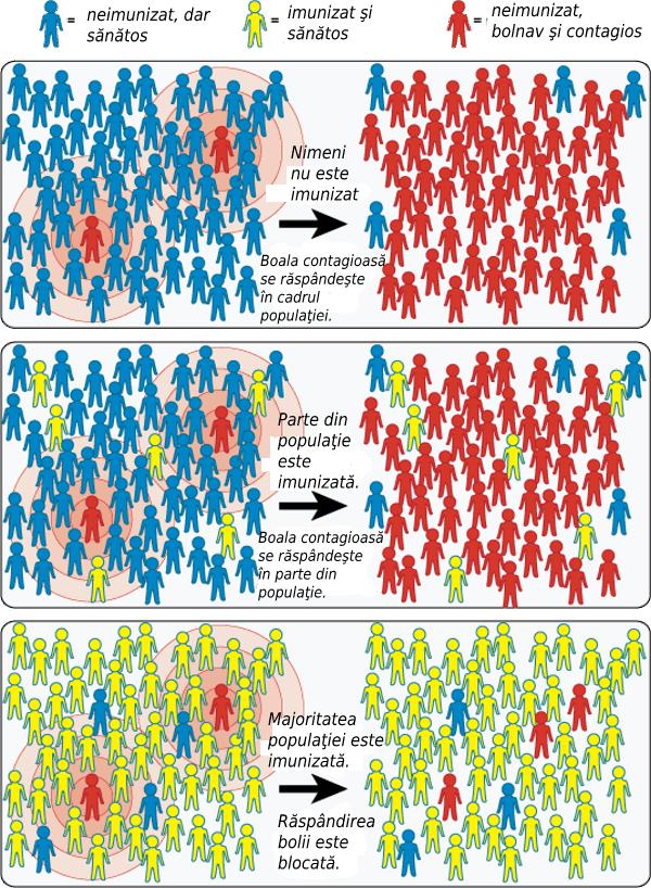 Pentru ca o boală contagioasă să se răspândească, un agent infecțios trebuie să găsească persoane susceptibile (care nu sunt imune) să fie infectate. Dacă nu se poate, lanțul de infectare este întrerupt și procesul de răspândire a bolii este încetinit.