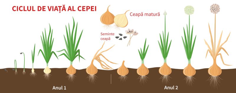 Ceapa, în fapt, are un ciclu de viață de 2 ani. În primul an produce ceea ce numești „ceapă verde”, iar la finalul sezonului, dacă a scăpat nemâncată, rădăcina este ceea ce numim „ceapă”. Dar dacă nu scoți ceapa din pământ, aceasta produce o nouă tulpină anul viitor, cu o floare cu semințe, care semințe au rolul de a pregăti noua recoltă. Agricultorii nu lasă planta să ajungă în al doilea an, dat fiind că recolta din primul este cea care asigură vânzările optime.
