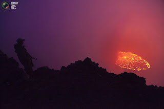 30 august, Congo: Un soldat stând de pază în Parcul Naţional Virunga priveşte spre lacul imens de lavă a vulcanului Nyiragongo.