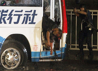23 august, Manila, Filipine: Corpul ofiţerului Rolando Mendoza care a ţinut 25 de ostatici prizonieri într-un autobus. 8 dintre aceştia au fost ucişi în timpul asaltului forţelor de ordine.