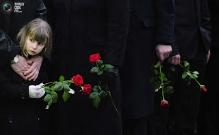 18 februarie, Anglia: O fetiţă la înmormântarea celor cinci soldaţi britanici ucişi în incidente separate în timpul confruntărilor din Afganistan.