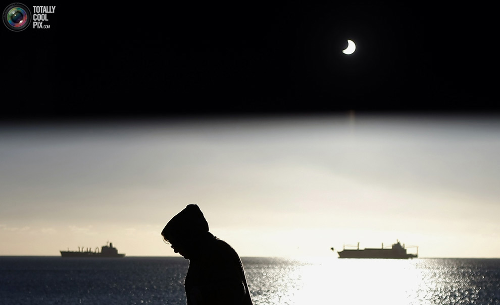 11 iulie, Valparaiso, Chile: Luna trecând printre Soare şi Pământ în timpul unei eclipse solare.