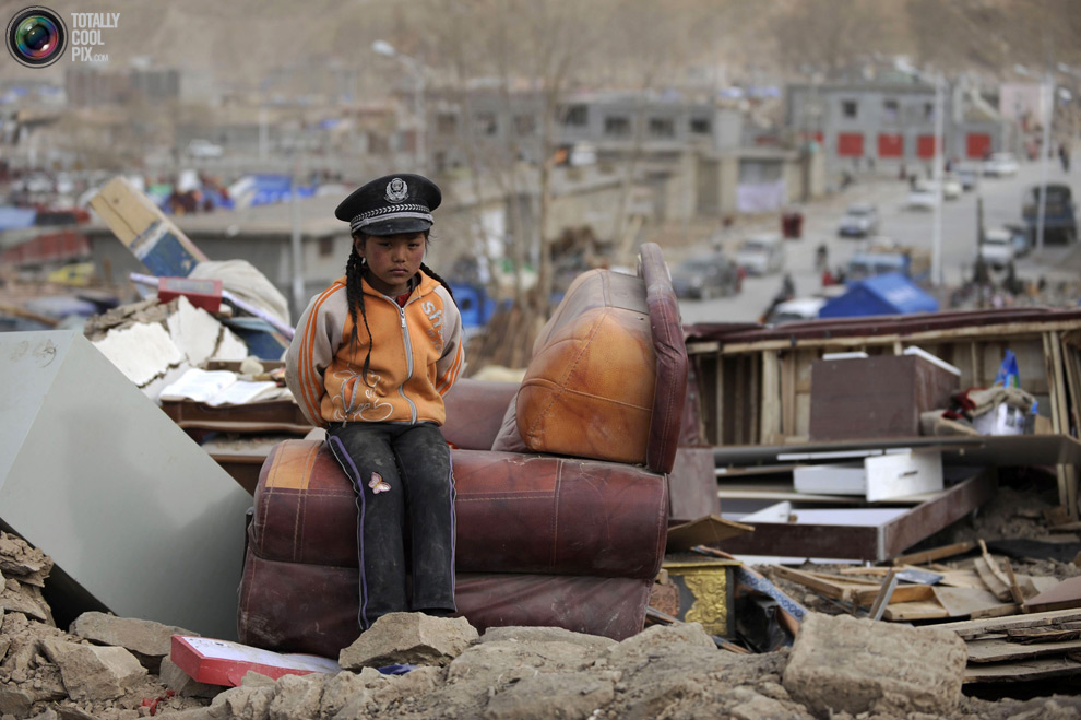 18 aprilie, provincia Qinghai, China: O tânără supravieţuitoare printre ruinele produse de cutremur. Bilanţ: 1706 victime.