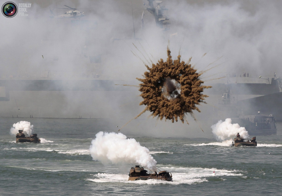15 septembrie, vestul Seulului, Coreea de Sud: Amfibii sud-coreene într-un exerciţiu. Se împlineau 60 de ani de la războiul coreean.