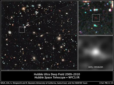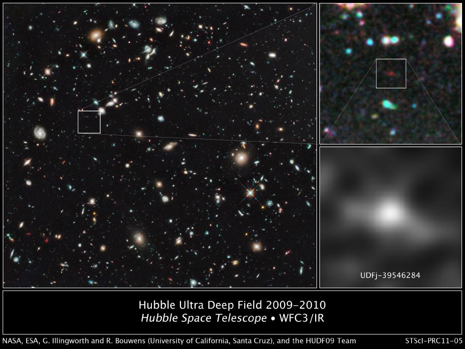 Cursa pentru găsirea celor mai îndepărtate obiecte din univers continuă. Astronomii au raportat descoperirea celei mai îndepărtate galaxii descoperite până în momentul de faţă. Lumina ei, care a fost capturată de telescopul spaţial Hubble, a fost emisă când Universul avea o vârstă mai mică de 500 de milioane de ani, lucru care o face cea mai "bătrână" galaxie observată vreodată.