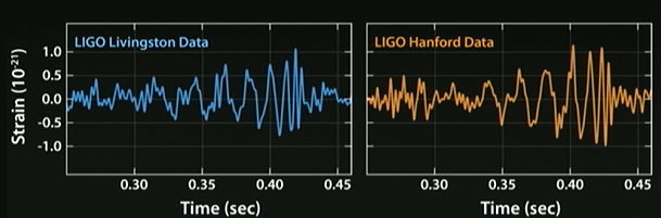 Ce au detectat interferometrele? Oscilaţii ale oglinzilor care la început au fost mai rare, apoi din ce în ce mai rapide. Exact ceea ce e de aşteptat dacă are loc unirea a două găuri negre masive, una cu masa de 29 de ori mai mare decât a Soarelui, iar cealaltă de 36 de ori mai masivă.
