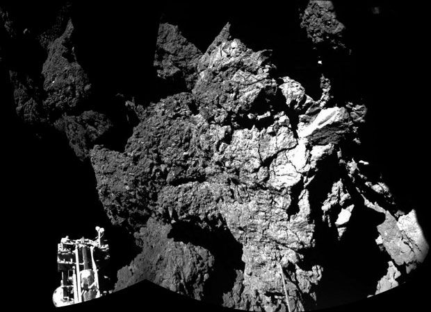 Acometizarea însă s-a dovedit a fi mult mai aventuroasă decât se aşteptau cercetătorii: Philae a atins solul cometei, însă nu a reuşit să se ancoreze: harpoanele cu care Philae era prevăzut nu au reuşit să pătrundă în solul cometei şi să fixeze landerul în mod corect. Cu ce consecinţe? Destul de dramatice: Philae a ricoşat de două ori şi a revenit la solul cometei într-o nouă poziţie aflată la sute de metri de cea prevăzută iniţial. Ba mai mult – s-a poziţionat în umbra unui crater, într-o poziţie înclinată. În ciuda acestor probleme, cercetătorii au reuşit să „vorbească” cu Philae şi să captureze semnalele emise de aceasta. Au reuşit să reconstruiască imagini de la solul cometei şi să realizeze o primă fotografie incredibilă.