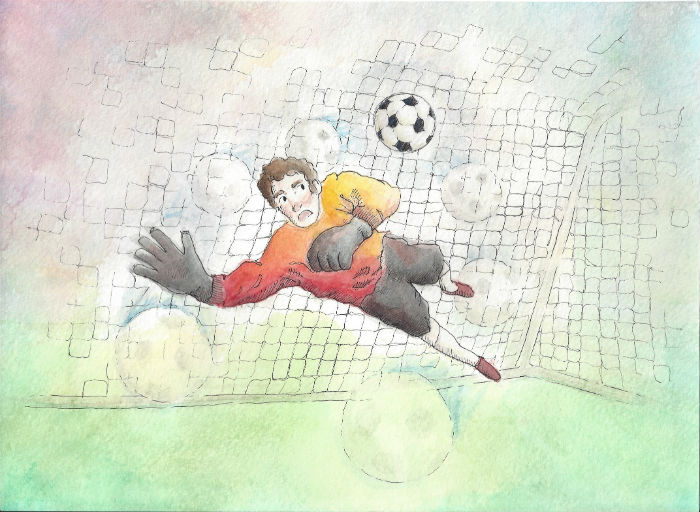 The stadium is fully silent in anticipation: the goalkeeper is ready to dive and catch the ball that the opponent player is about kicking from the penalty spot. The referee whistles, the player hits the ball straight to the goalkeeper, who smiles for the easy catch, but something weird happens: the ball passes both to his right AND to his left and ends in the net accompanied by the roar of the supporters.
