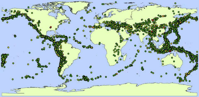 Distribuţia cutremurelor de peste 6 grade pe scara Richter în ultimii 100 de ani