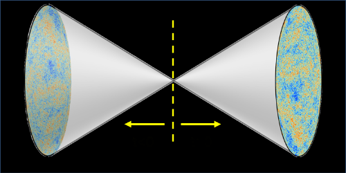 Unul ar fi cel în care ne aflăm noi, celălalt, un anti-univers format din antimaterie, ar fi separat de al nostru, întrucât timpul curge în direcţie opusă. Această teorie se bazează pe conservarea unei simetrii fundamentale în fizică, simetria CPT. Aceasta simetrie ne spune că o lume formată din antiparticule, în care timpul merge înapoi, ar trebui să aibă caracteristici asemănătoare cu lumea noastră, cea formată din particule, cu timpul care merge „înainte” şi spaţiul pe care-l vedem.