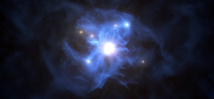 O pânză de păianjen din filamente de materie care înconjoară o enormă gaură neagră la o distanţă de circa 13 miliarde ani-lumină de noi conţine (cel puţin) şase galaxii. Studiul acestei structuri ne poate ajuta să înţelegem originea găurilor negre de mari dimensiuni, dar şi cea a metastructurilor cosmice.