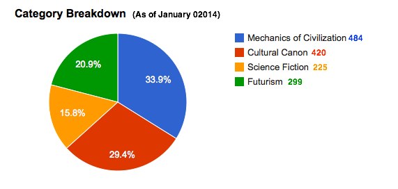 Alte liste remarcabile au fost alcătuite de Violet Blue (16 volume pe tema sexualității și reproducerii), Kevin Kelly (aprox. 200 titluri de științe aplicate și meșteșuguri), George Dyson (selectând lucrări de istorie, biologie și știință, sute de titluri), Mark Pauline (17 volume de literatură „oblică” și științifico-fantastică), precum și diversele liste ale Mariei Popova (33 de cărți despre „cum să trăiești”) sau Bruce Sterling & Daniel Suarez (gen SF și tehnologie). Listele au fost publicate pe site-ul Long Now și preluate de presă tech (Wired, bloguri culturale).