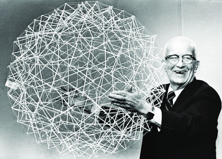 Traducere după Buckminster Fuller, the architect who wanted to redesign the world (and inspired a nanosized one) de Antonios Kelarakis, profesor de polimeri și nanomateriale, School of Pharmacy and Biomedical Sciences, University of Lancashire.