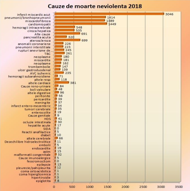 Cauza care a provocat cele mai multe decese este infarctul miocardic acut: 3.046 de decese.