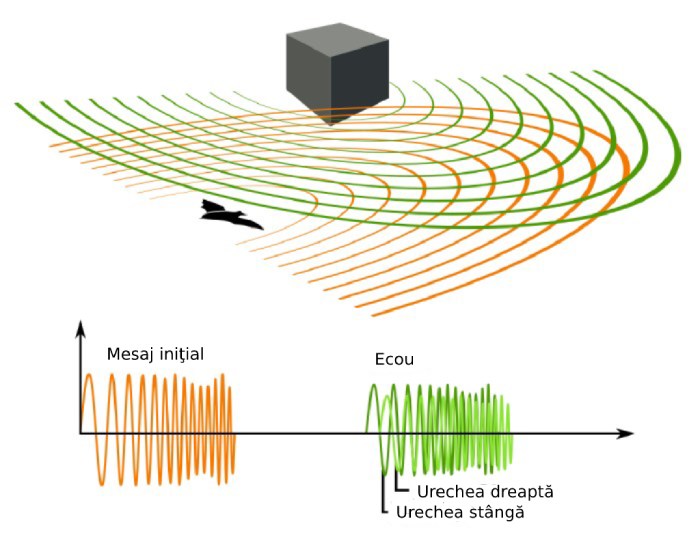 Animalul emite o serie de sunete cu frecvență înaltă (adesea neperceptibile pentru om) care ricoșează de obiecte sau obstacole și revin sub formă de ecou (ultrasunete), fiind detectate de urechi sau alți receptori senzoriali. Obiectul este localizat cu mare precizie cu ajutorul direcției ecoului și timpului scurs între emisia și recepția sunetului.