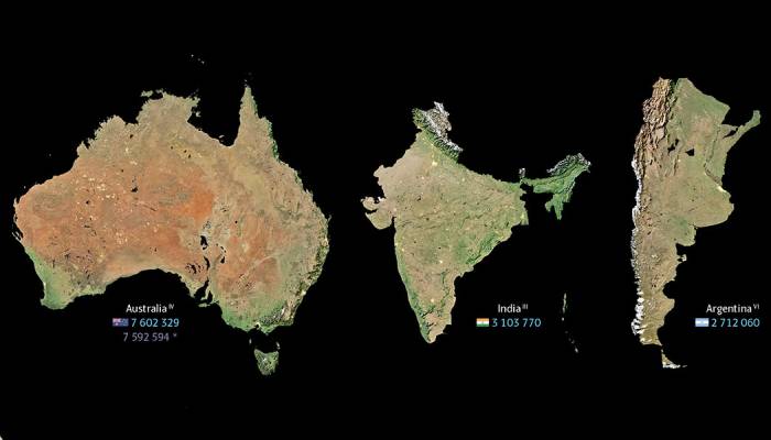 În acest articol vă invităm să vedeți cum se compară din punct de vedere al suprafeței câteva dintre țările lumii. Am selectat primele opt țări, una sub alta, pentru o comparație fidelă.