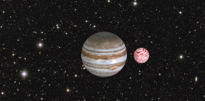 Deoarece masa lui Jupiter este mult mai mare decât masa obiectului, viteza lui Jupiter se schimbă doar cu o valoare foarte mică, dar viteza obiectului se schimbă semnificativ.