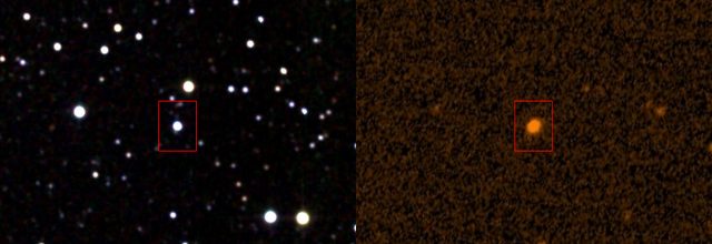 Steaua lui Tabby, în infraroșu (stânga) și ultraviolet (dreapta)
