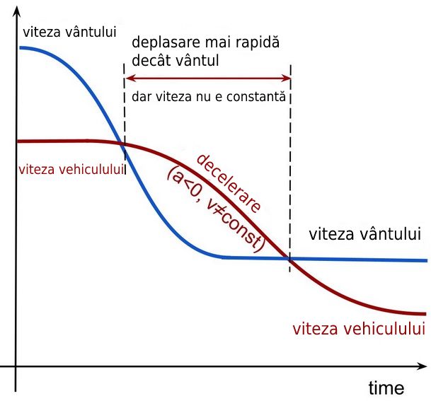 În condiții de vânt variabil, vehiculul accelerează pe perioada în care vântul este mai puternic, apoi se deplasează din inerție și decelerează atunci când vântul își pierde din intensitate. Pentru o perioadă scurtă, într-adevăr, vehiculul se deplasează mai repede decât vântul. Dar în condiții de vânt constant nu este posibil să ajungem la o viteză a vehiculului mai mare decât viteza vântului.
