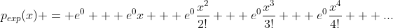 derivata funcției exponențiale va fi mereu funcția exponențială, deci toate derivatele vor avea valoarea e0 la x = 0, deci: