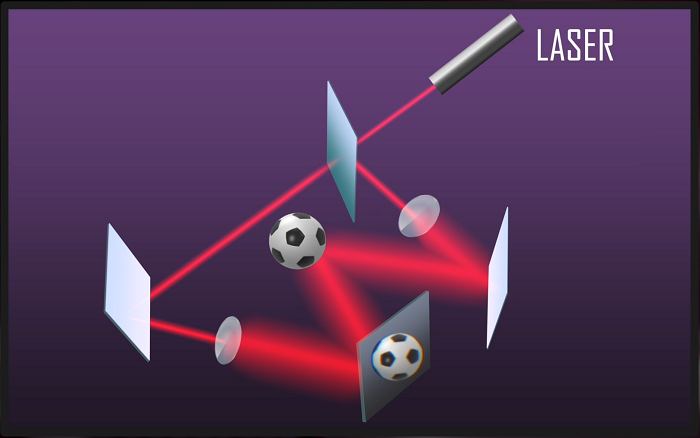 Această interferență este cea utilizată pentru a crea holograme. Pentru a obține acest rezultat, mai întâi împărțim un fascicul laser în două cu un material semi-transparent numit divizor de fascicul (eng. beam-splitter), iar apoi lărgim ambele fascicule cu o lentilă divergentă. Primul fascicul este direcționat către obiectul care trebuie proiectat. Lumina nu va fi pur și simplu reflectată de către obiect, ci va fi împrăștiată în multe direcții. Acea lumină împrăștiată conține informații despre suprafața obiectului. Cele două fascicule sunt apoi recombinate, iar intensitatea luminii este captată de un ecran.