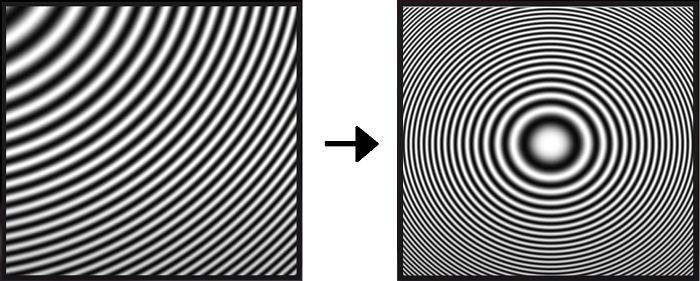 Se numește placă de zonă Fresnel. Intensitatea și lățimea inelelor depind de distanța dintre obiectul asemănător punctului și ecran și de lungimea de undă a luminii. Totuși, orice obiect este în esență alcătuit din mai multe obiecte asemănătoare punctelor, astfel încât imaginea de interferență de pe ecran este, de fapt, doar o suprapunere a mai multor plăci de zonă diferite.