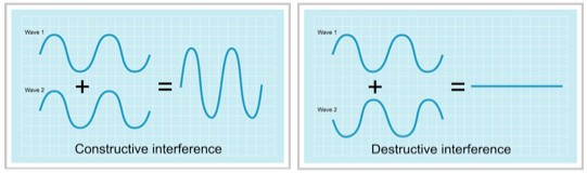 Atunci când undele luminoase se suprapun, acestea nu se adună pur şi simplu, ci interferează. Suma a două unde poate fi mai mare (interferenţă constructivă) sau mai mică (interferenţă distructivă) în funcţie de modul cum se aliniază acestea.