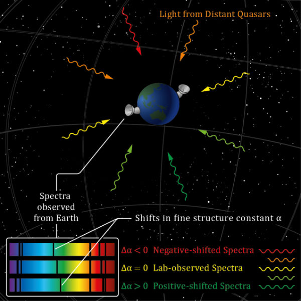 Cu un deceniu în urmă, echipa UNSW a descoperit, spre surprinderea tuturor, că la miliarde de ani-lumină depărtare de noi valoarea pentru FSC este uşor mai mică decât cea de aici de pe Pământ. Cu toate acestea, diferenţa este destul de mică, de doar aproximativ 1 parte la o sută de mii. Cu alte cuvinte, fizica în celălalt capăt al universului fizic ar fi aproape la fel (dar nu identică) cu cea de aici de pe Pământ. Aceasta înseamnă că diagrama de mai sus arată un efect de aproximativ 10.000 de ori mai mare decât cel pe care cercetătorii l-au constatat. Semnalul recepţionat a fost suficient de slab, astfel încât este justificat ca oamenii să se întrebe dacă nu cumva rezultatele obţinute de echipa UNSW se datorează impreciziei de măsurare.