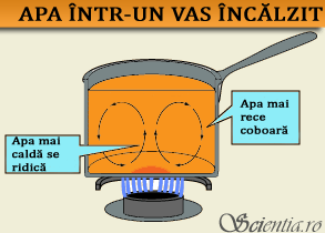 - Mişcarea apei dintr-un vas aflat pe aragaz, la încălzit.