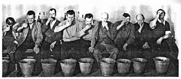 Alcoolicii din Uniunea Sovietică luau un medicament amestecat cu lichior care le inducea greaţă. Tratamentele de sensibilizare vizibilă - nu doar imaginativă, cu medicamente care induceau greaţa, fuseseră încercate în Uniunea Sovietică încă din anii '30. Un text psihologic sovietic din anii '30 afişează o imagine cu un şir de oameni stând pe nişte scăunele, fiecare având câte o găleată de metal între genunchi şi bând ceva dintr-un pahar. Era un amestec de lichior cu un medicament, care îi făcea rapid să vomite. Acest tratament urmărea să-i condiţioneze împotriva băuturii.