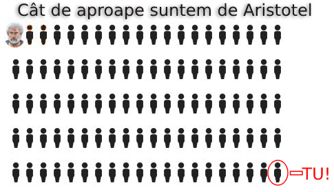 • Aristotel e un filozof care a trăit tare demult. Ori cel puțin așa pare. Dar dacă ne raportăm la el în generații, nu trebuie să numărați decât 98 de înaintași și sunteți în vremea lui! Pe 2, chiar 3 (în unele cazuri), i-ați prins în viață. Am pus 24 de ani pentru fiecare generație.
