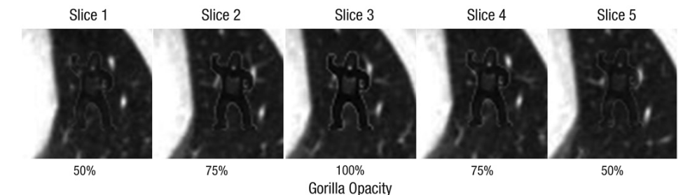 Gorila ne mai învață ceva. Într-un alt experiment din 2013, radiologilor li s-a oferit o serie de scanări pulmonare. Li s-a cerut să caute noduli (care apar ca mici cercuri deschise la culoare) pe fiecare scanare. Într-una dintre scanări, a fost suprapusă o imagine mare a unei gorile dansatoare peste scanarea pulmonară. În acest studiu, 83% dintre radiologi nu au observat-o, deși era de 48 de ori mai mare decât nodulul mediu pe care îl căutau. Unii dintre ei chiar au privit direct gorila și tot nu au observat-o!