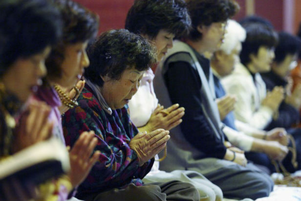 Părinţi sud-coreeni, rugându-se pentru succesul copiilor lor la examenul de intrare în liceu