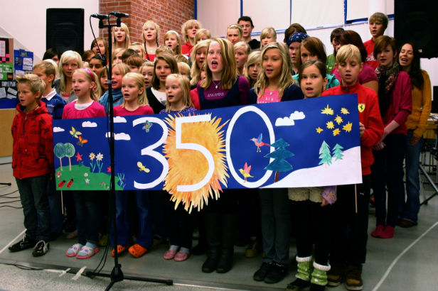 Copii într-o şcoală din Finlanda cântând "The time is now" în Ziua de acţiune privind clima