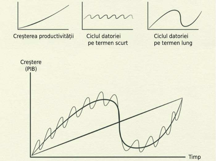 Creșterea productivității nu fluctuează prea mult, deci nu este un factor important al fluctuațiilor economice, dar datoria este.