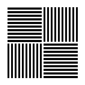 Cel mai probabil ce vedeți mai sus este o serie de patru pătrate formate din linii orizontale și perpendiculare negre. Așa ar fi normal. Dacă o să priviți imaginea de pe pagina următoare pentru 3 minute și vă întoarceți apoi la imaginea de mai sus o să observați un lucru misterios: dungile orizontale vor fi însoțite de o „aură” verde, iar cele verticale de una magenta.