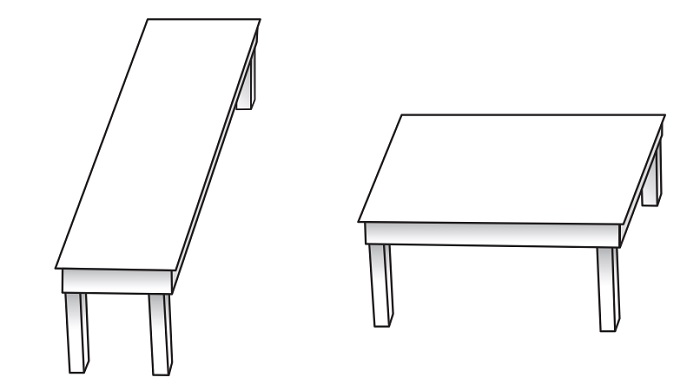 Care masă este mai lungă? Indiferent cum ați privi și indiferent de cât de mult ați privi imaginea, masa din partea stângă vă va părea, în mod evident, mai lungă. Uimitor este că nu este! În fapt are exact aceeași lungime ca cea din dreapta!