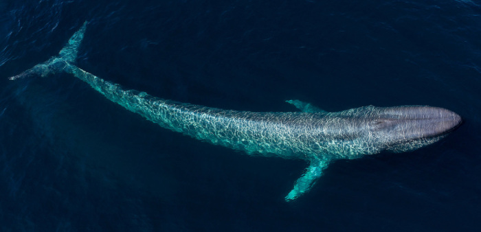 Balena albastră, cel mai mare animal care a existat vreodată pe Terra. Ajunge până la 34 de metri lungime şi 150 de tone.