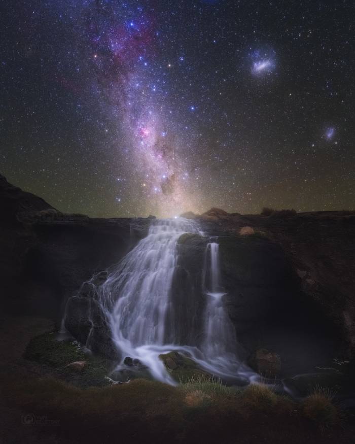 Calea Lactee pare că se prelinge într-o cascadă din deşertul Atacama, Chile. Credit: NASA