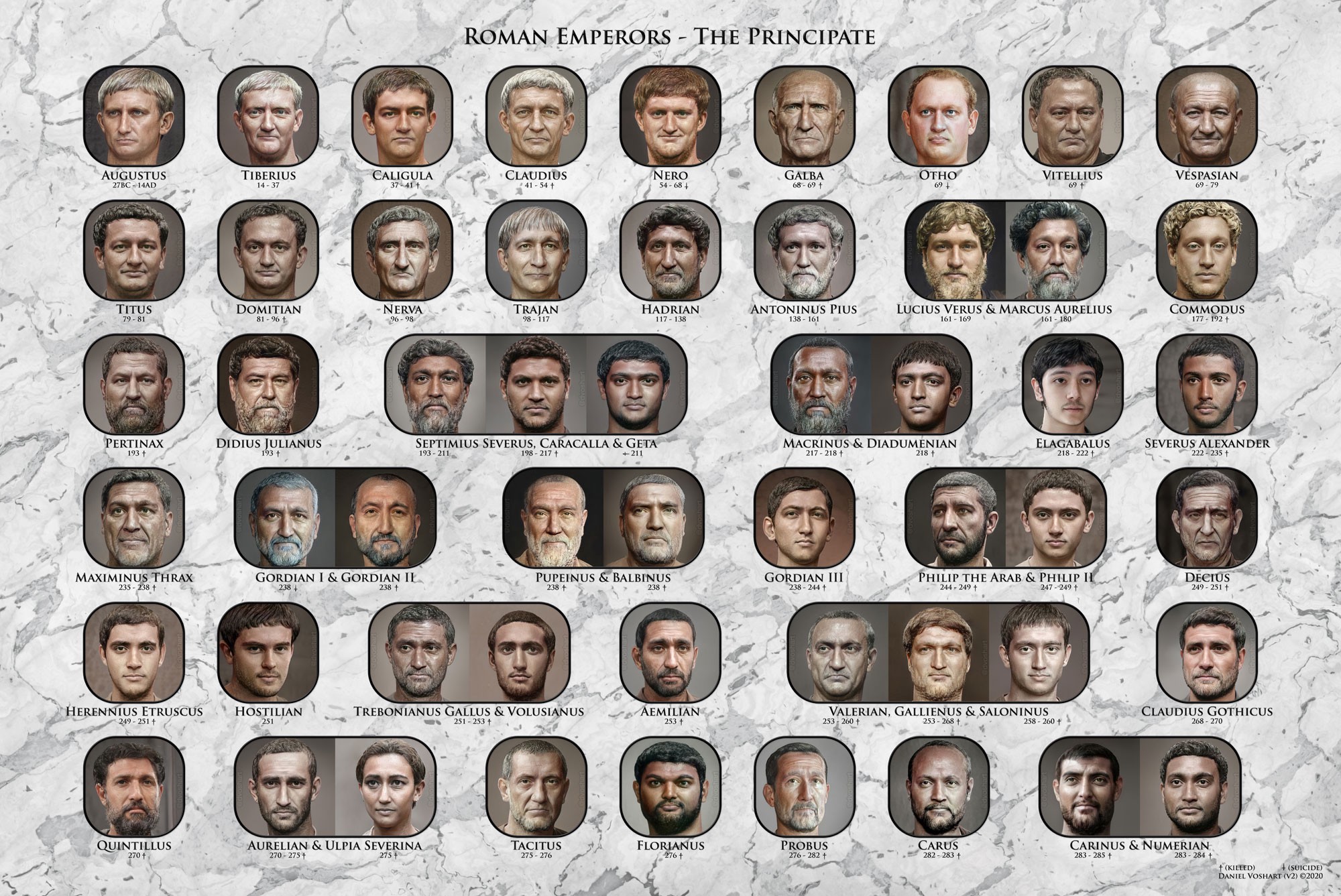 • Daniel Voshart, specialist în realitate virtuală, nevoit să ia o pauză pe timpul pandemiei - și-a găsit un hobby: să dea culoare fețelor împăraților romani, folosind imaginea statuilor, monezi vechi șamd. Ce a ieșit e impresionat! [>LINK<eng>]