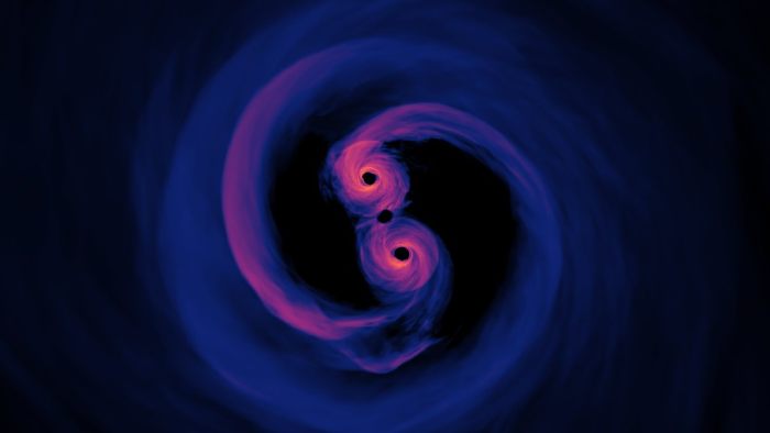 Fuziune găuri negre (reprezentare grafică). Credit: NASA