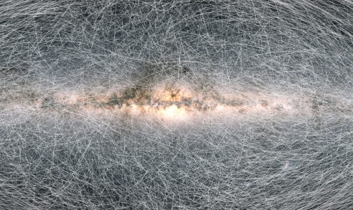 Traiectoriile din imagine arată cum 40.000 de stele din Calea Lactee se vor deplasa în următorii 400 de mii de ani