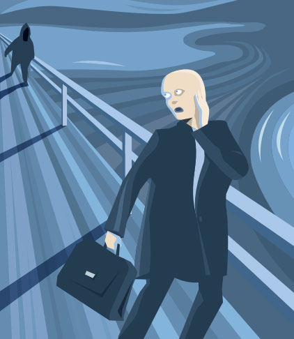 Ai rămas la lucru până mult prea târziu. Luna luminează cerul în timp ce tu te îndrepţi spre casă dinspre staţia izolată de autobuz. Dintr-o dată auzi paşi în spatele tău. Se apropie rapid. "Nimic care să te îngrijoreze", încerci tu să îţi spui, "doar un alt angajat sărac forţat prea mult la locul de muncă". Dar un sentiment înfiorător începe să te cuprindă. Cineva într-adevăr te urmăreşte...
