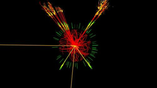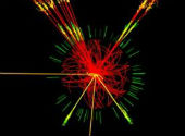 Simularea apariţiei unui eveniment de tip Higgs în detectorul Atlas.